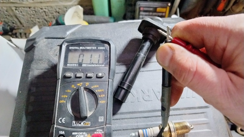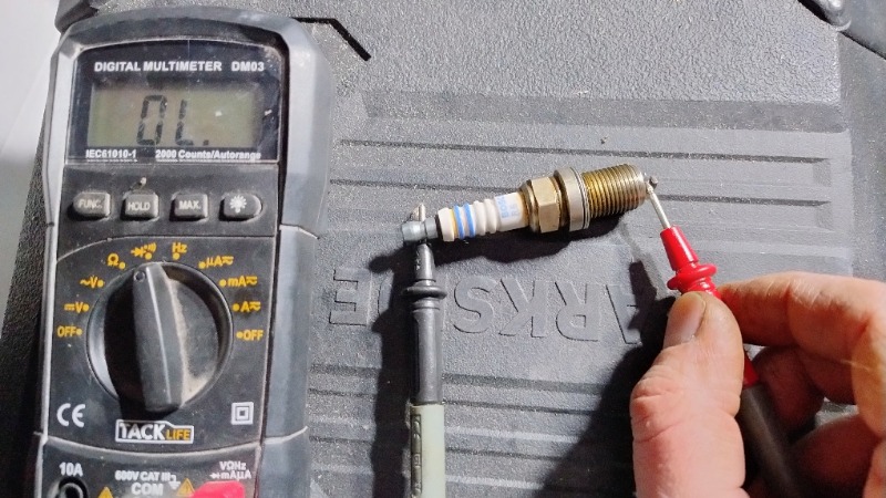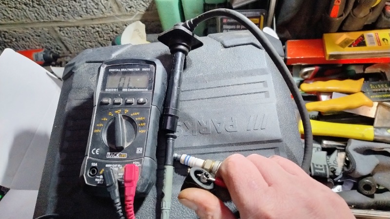 Pour vérifier mes bougies, on est d'accord que si je teste a l'ohmmètre, je dois avoir une continuité entre la tête et l'électrode ? Or on voit sur la photo que je ''ai rien sur aucune des 4 bougies.