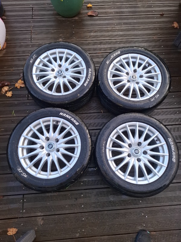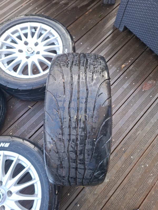 Avec un jeu de pneu semi slick Nankang acheté 273 euros les 4. 2 pneus sont en bonne état et 2 plus usés car ma prépa les as mis à rude épreuve 😅.