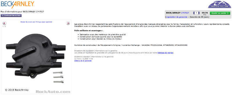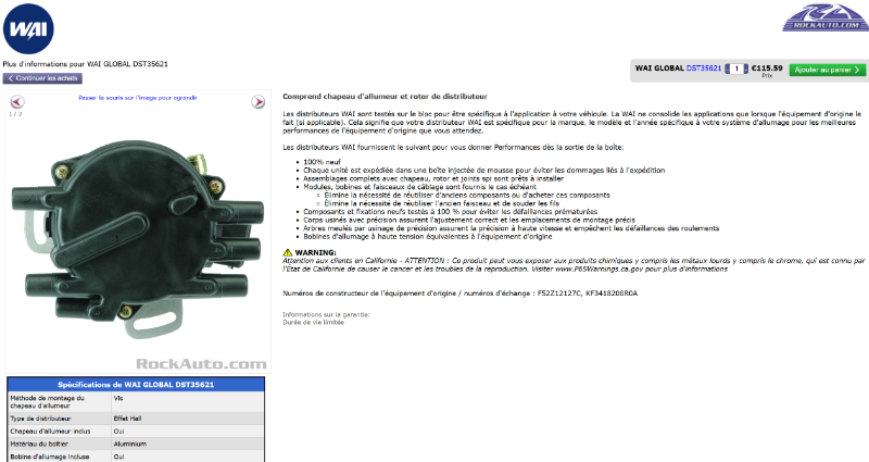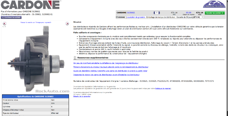 Après recherche, j'ai trouvé des pièces sur Rockauto qui semblent correspondre. Si jamais un expert peut me renseigner sur la pièce qui irait pour cette voiture, ça m'aiderait grandement